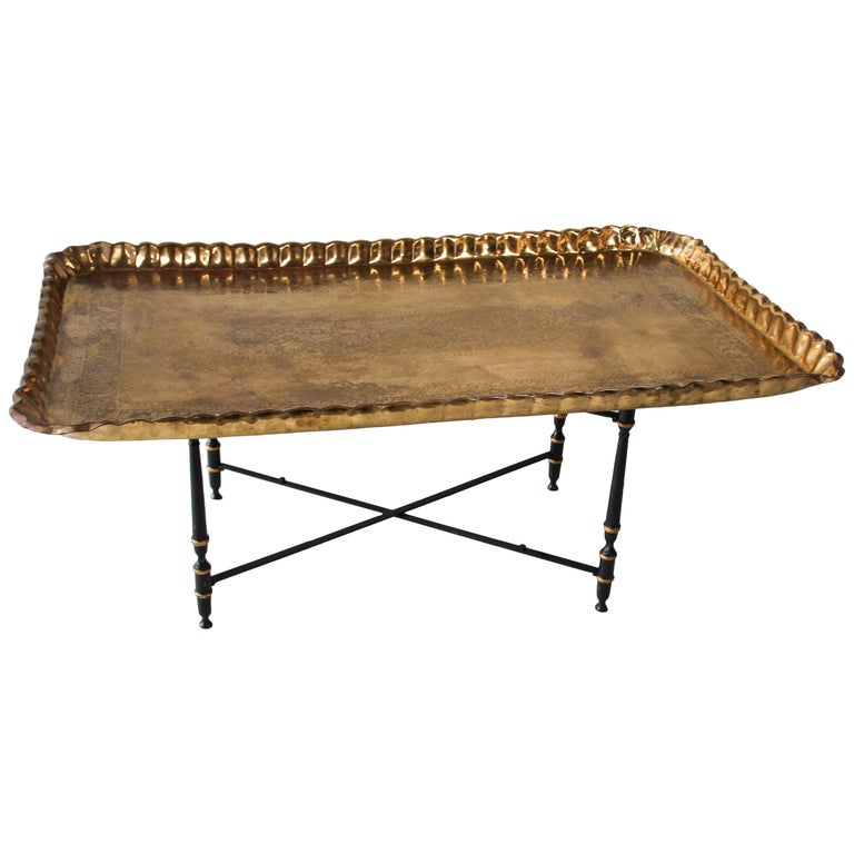 Spruce up your space in an instant by adding or switching out a coffee table. Tie together the look by adding a rug. Mid century moroccan brass tray coffee table 4 spider leg folding. Handcrafted moroccan 20 round gold brass tray table, brass coffee. Vintage mastercraft ebonized brass etched rectangular glass top coffee table. Mid century moroccan brass tray coffee table 4 spider leg folding. Rated 5 out of 5 stars. It has a small pull out the tray from the top of the cabinet. For lovers of classic yet modern style, this brass tray coffee table from threshold™ is the perfect pick for you. Extra large vintage brass tray, moroccan style coffee table tray, etched brass, scalloped pie crust border, hollywood regency, boho decor upliftedstyle 5 out of 5 stars (36) $ 550.00 free shipping add to favorites vintage mid century modern, brass base glass top coffee table, hollywood regency style brass coffee table. 4.8 out of 5 stars. 11 length x 7.25 height x 1.5 width, matte brass. Stunning antique islamic mamluk/ cairo ware brass tray top table.